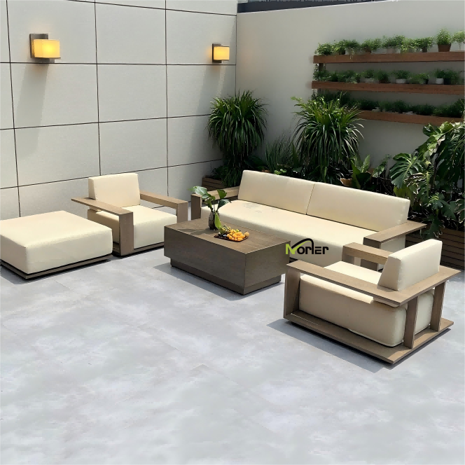 5. সেগুনের আউটডোর সোফা: অত্যন্ত আবহাওয়া-প্রতিরোধী প্রাকৃতিক সেগুন থেকে তৈরি, এই সোফাটি একটি সূক্ষ্ম দানা, উচ্চ স্থিতিশীলতা এবং ব্যবহারের সাথে আরও বিলাসবহুল অনুভূতি তৈরি করে, এটি একটি উচ্চ-সম্পন্ন রিসর্ট-স্টাইলের বারান্দা তৈরির জন্য একটি ক্লাসিক পছন্দ করে তোলে।