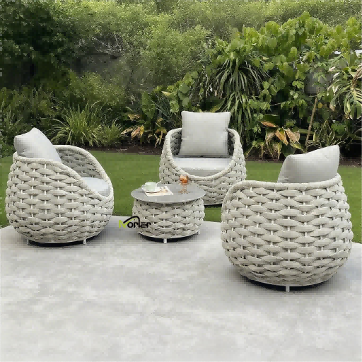 4. দড়ি আউটডোর সোফা: হাত-বিনুনিযুক্ত দড়ির নকশা দৃশ্যত হালকা এবং নিঃশ্বাস নেওয়ার মতো, এবং অ্যালুমিনিয়াম ফ্রেম একটি আধুনিক স্পর্শ যোগ করে। আরাম এবং শৈল্পিকতার সমন্বয়, এটি একটি অত্যাধুনিক ব্যালকনি তৈরি করার জন্য একটি জনপ্রিয় পছন্দ।