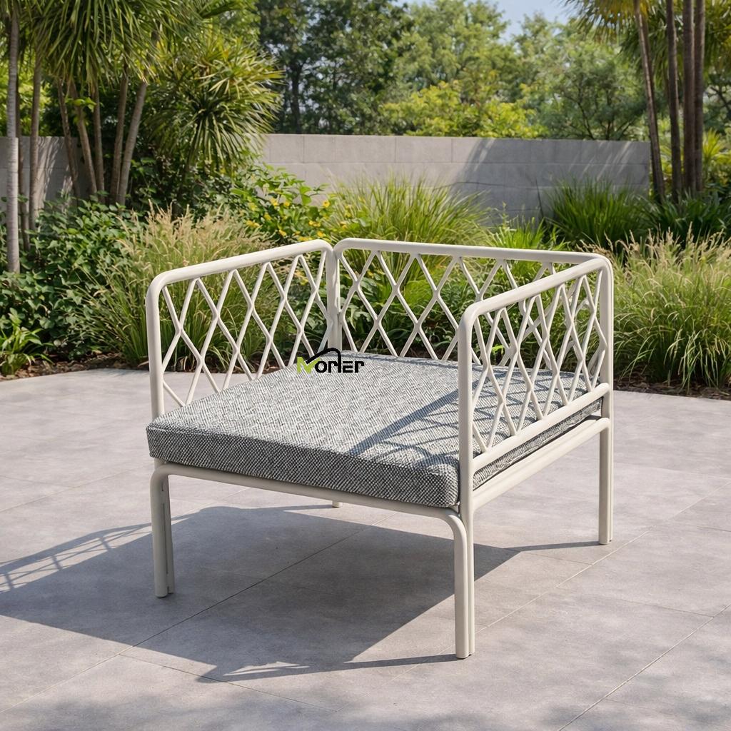 উচ্চ-মানের পাউডার-প্রলিপ্ত অ্যালুমিনু দিয়ে নির্মিতমি, এই বহিরঙ্গন সোফা আধুনিক চেহারা বজায় রেখে বিভিন্ন আবহাওয়ার পরিস্থিতি সহ্য করার জন্য ডিজাইন করা হয়েছে।